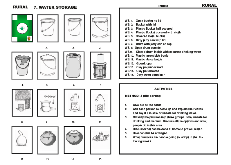 2. The cards can be used combined with 7.a. Water Sources and 8.b. Utilisation of drinking water to illustrate the safe water chain.