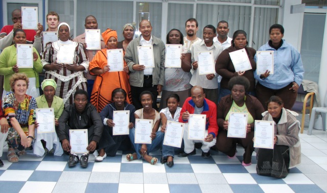In 2005, the Founders of Africa AHEAD moved to Cape Town and started to reach out to start CHC projects in the many informal settlements which stretch for miles on the Cape Flats near the city of Cape Town. The University of the Western Cape sponsored a workshop in Khayelitsha, one of the most infamous of the 200 informal settlements where hygiene and sanitation are a real challenge. Dr. Waterkeyn trained 35 health workers associated with an urban renewal project managed by the University. The methodology was seen in a positive light by the Director of Health of the City Municipality, who commissioned a manual and set of training materials for urban Community Health Clubs in South Africa.